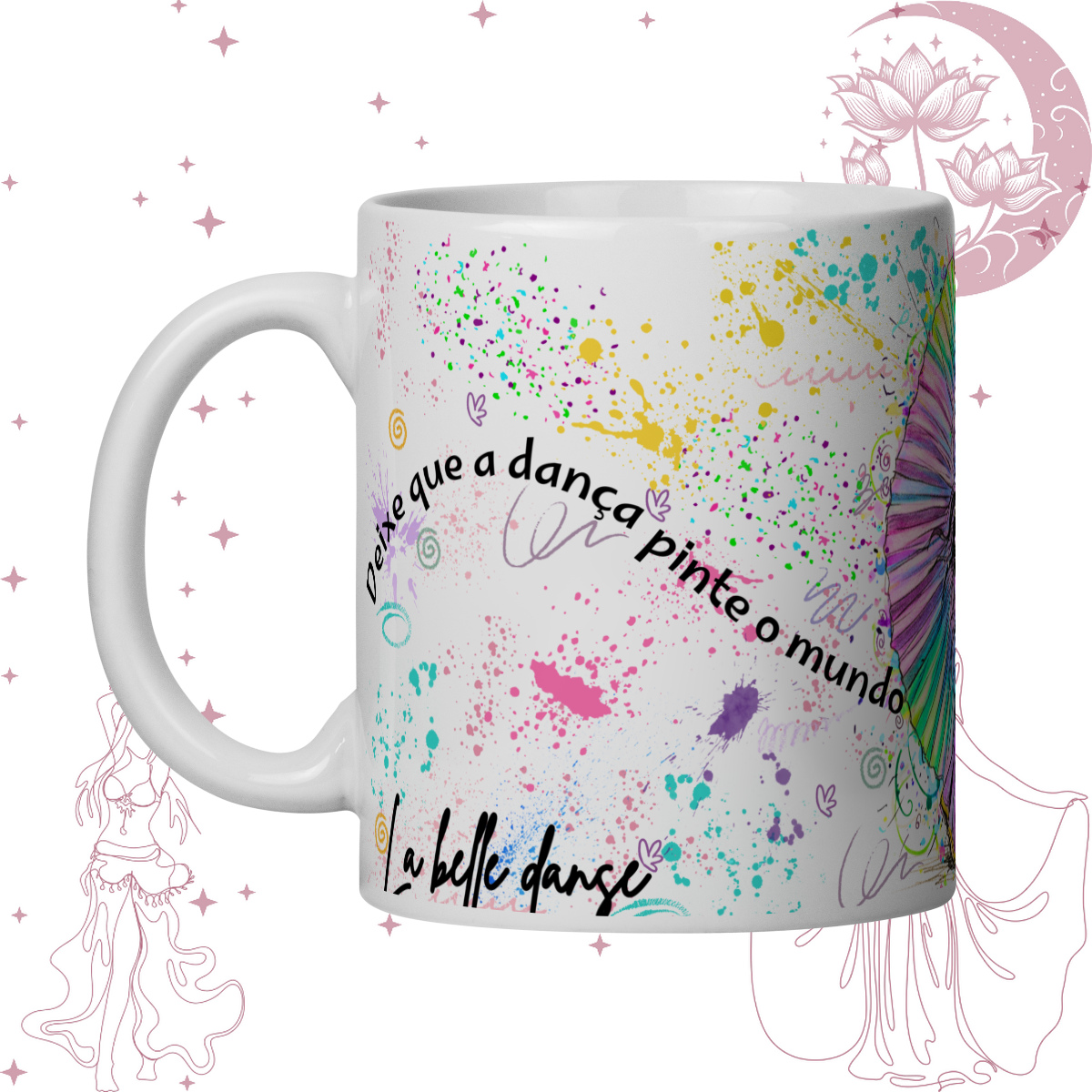 A caneca “Dança em Cores” celebra a beleza da dança do ventre com arte vibrante e poética. Leve energia, movimento e expressão em cada detalhe.